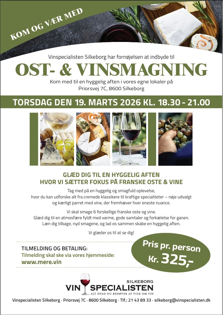 OST- & VINSMAGNING TORSDAG DEN 19. MARTS 2026 KL. 18.30 – 21.00